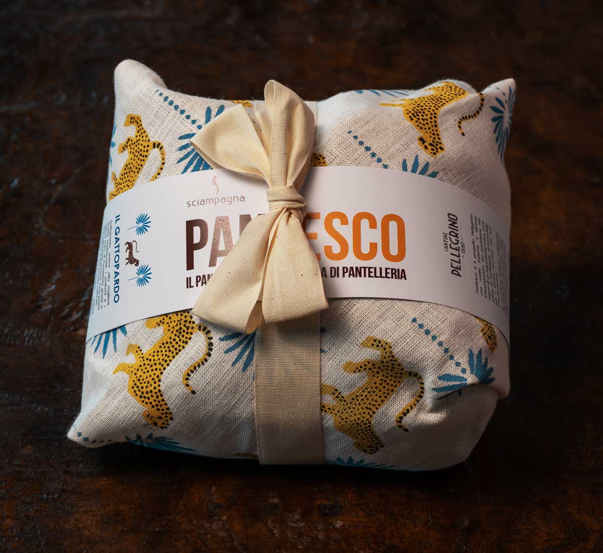 For the cellar I designed a unique packaging that tells the stories of the four panettone masters across the territory, represented by four distinctive patterns from our collection: La Mora, Orlando, Gattopardo and Barocco. These patterns were hand-printed on upcycled linen placemats, obtained from the remnants of our collections, and accompanied by a paper label that tells the inspiration behind each pattern. Everything is wrapped and closed with a delicate cotton bow, adding a touch of elegance to the product.