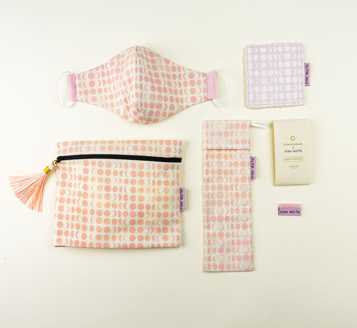 Pink Moon ha manifestato un forte interesse per i nostri porta saponi, spingendoci a espandere la collaborazione su una gamma più ampia di prodotti. Per integrarsi con la sua linea di skin care, abbiamo sviluppato esclusivamente per lei dei face scrub in cotone organico e fibra d'arancia, insieme a fasce per i capelli in tencel personalizzate con il suo logo.