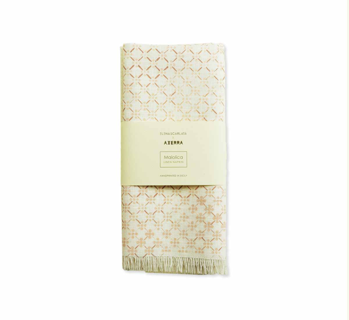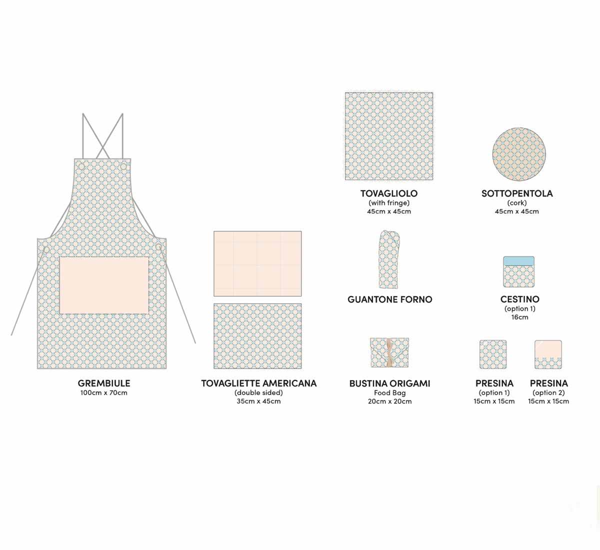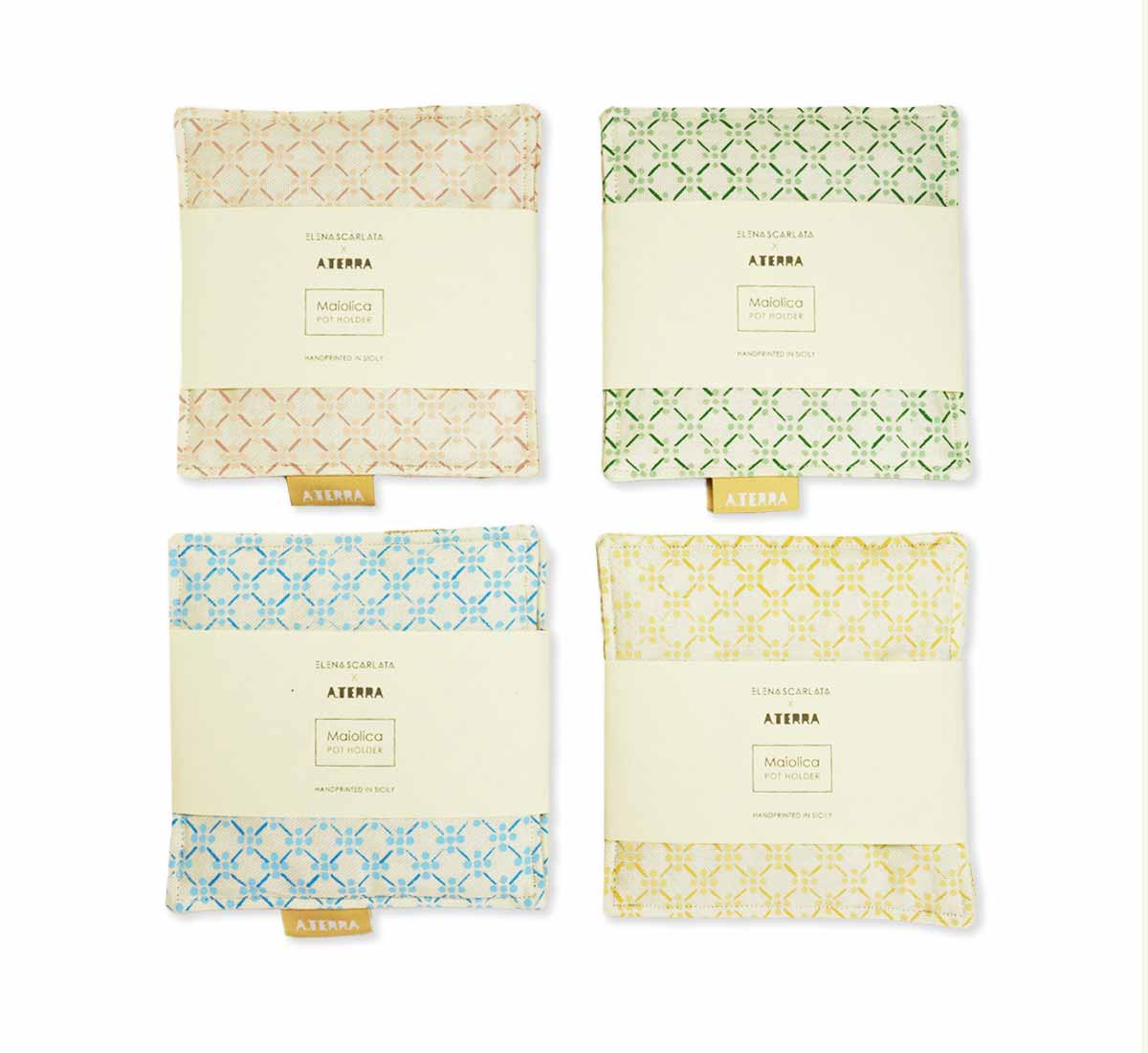 Abbiamo personalizzato una raffinata maiolica siciliana risalente alla fine del XIX secolo per A.Terra e applicato il suo design distintivo su una vasta gamma di prodotti lifestyle per la cucina. Questi includono presine, guanti da forno, tovagliette, grembiuli e altro ancora. Utilizzando tessuti in cotone antimacchia trattati senza l'impiego di plastica, abbiamo garantito la qualità e la sostenibilità dei nostri prodotti. Inoltre, i tessuti sono stati stampati a mano, aggiungendo un tocco artigianale e unico a ogni pezzo. Le etichette dei prodotti sono state realizzate utilizzando gli scarti della plastica, dimostrando il nostro impegno per l'ecologia e la riduzione degli sprechi.